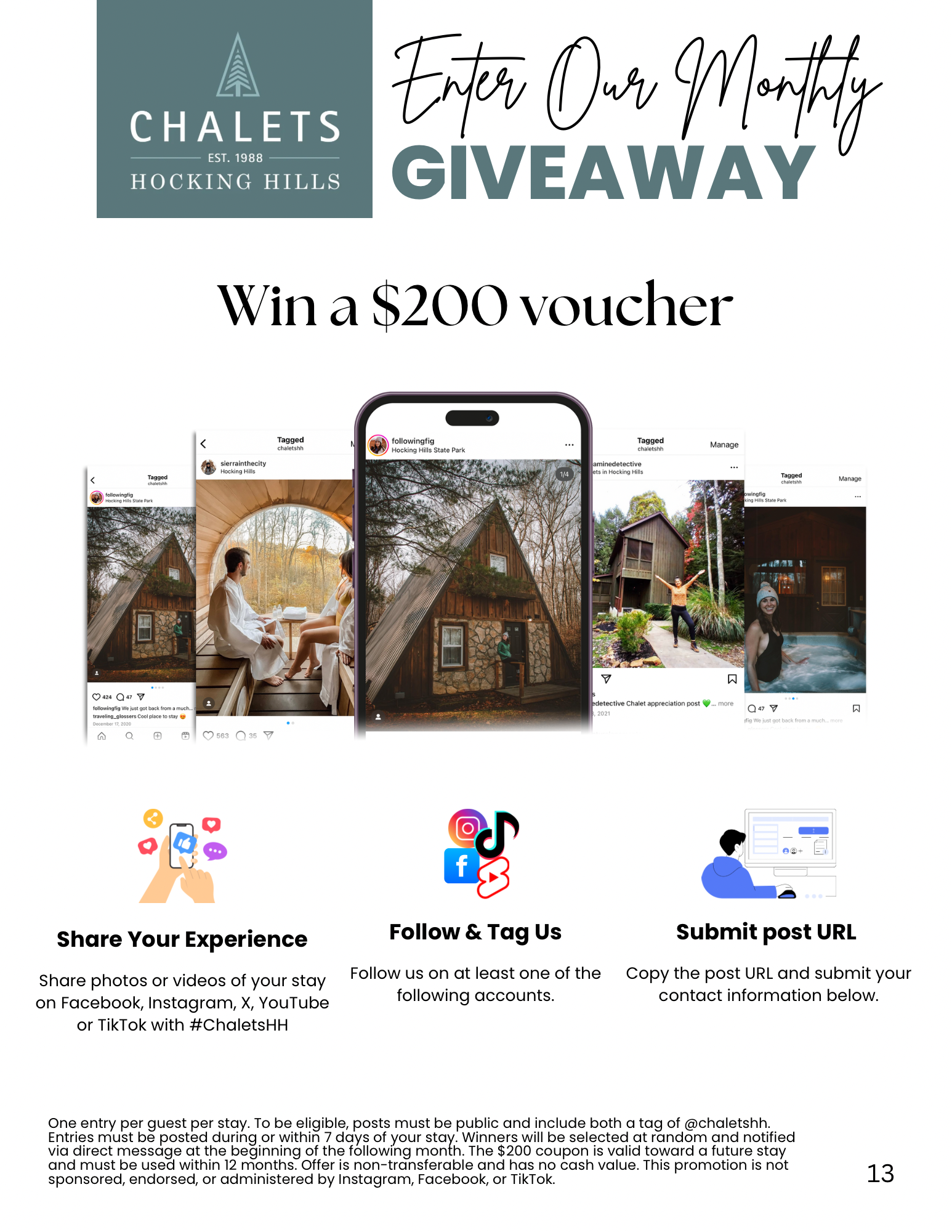 $200 Monthly Giveaway - Enter Today! - Chalets At Hocking Hills